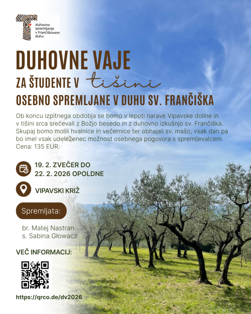 Mladi, lepo vabljeni na duhovne vaje v Vipavski Križ. Več na plakatu.